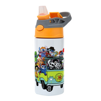 Stitch Halloween scooby car, Children's hot water bottle, stainless steel, with safety straw, Orange/Grey (360ml) BPA-FREE