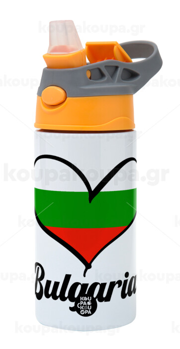 Bulgaria flag, Children's hot water bottle, stainless steel, with safety straw, Orange/Grey (360ml) BPA-FREE