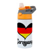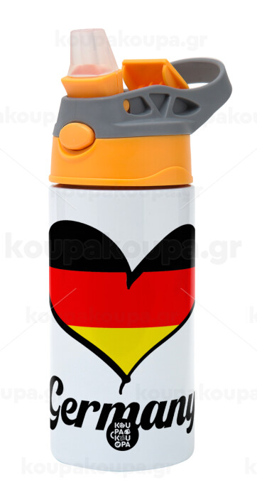 Germany flag, Children's hot water bottle, stainless steel, with safety straw, Orange/Grey (360ml) BPA-FREE