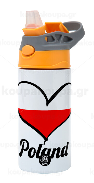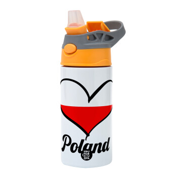 Poland flag, Children's hot water bottle, stainless steel, with safety straw, Orange/Grey (360ml) BPA-FREE
