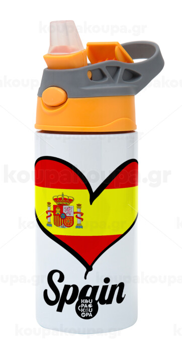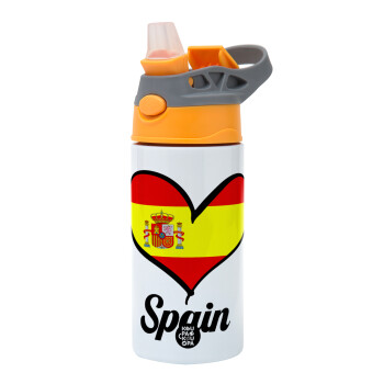 Spain flag, Children's hot water bottle, stainless steel, with safety straw, Orange/Grey (360ml) BPA-FREE