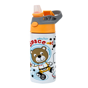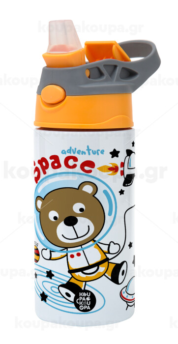 Kids Space, Children's hot water bottle, stainless steel, with safety straw, Orange/Grey (360ml) BPA-FREE