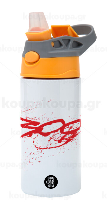 Οι 300 της Σπάρτης, Children's hot water bottle, stainless steel, with safety straw, Orange/Grey (360ml) BPA-FREE