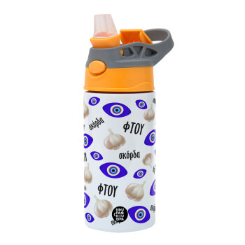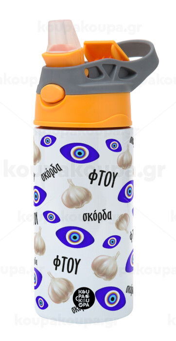 Φτου, φτου, σκόρδα!!!, Children's hot water bottle, stainless steel, with safety straw, Orange/Grey (360ml) BPA-FREE