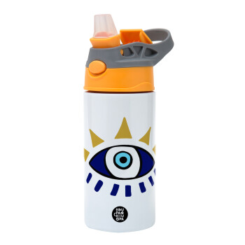 blue evil eye, Children's hot water bottle, stainless steel, with safety straw, Orange/Grey (360ml) BPA-FREE