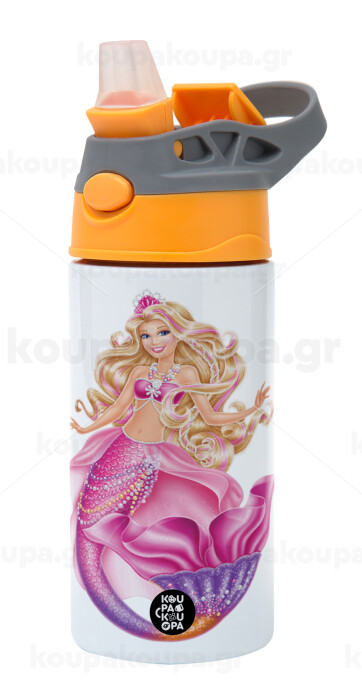 Barbie mermaid , Children's hot water bottle, stainless steel, with safety straw, Orange/Grey (360ml) BPA-FREE