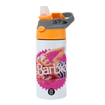 Barbie is everything, Children's hot water bottle, stainless steel, with safety straw, Orange/Grey (360ml) BPA-FREE