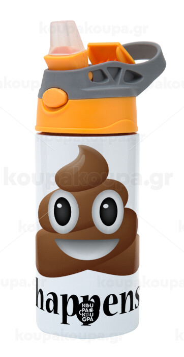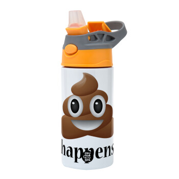 Shit Happens, Children's hot water bottle, stainless steel, with safety straw, Orange/Grey (360ml) BPA-FREE