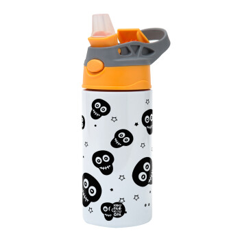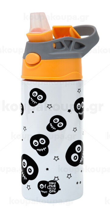 Skull avatar, Children's hot water bottle, stainless steel, with safety straw, Orange/Grey (360ml) BPA-FREE
