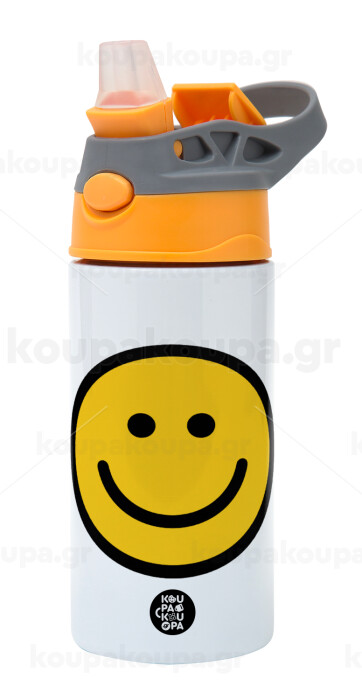Smile classic, Children's hot water bottle, stainless steel, with safety straw, Orange/Grey (360ml) BPA-FREE