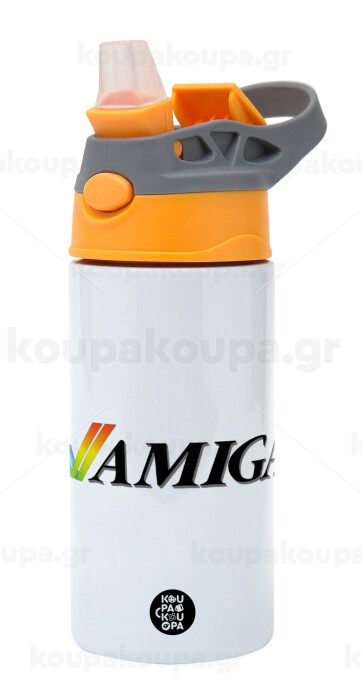 amiga, Children's hot water bottle, stainless steel, with safety straw, Orange/Grey (360ml) BPA-FREE