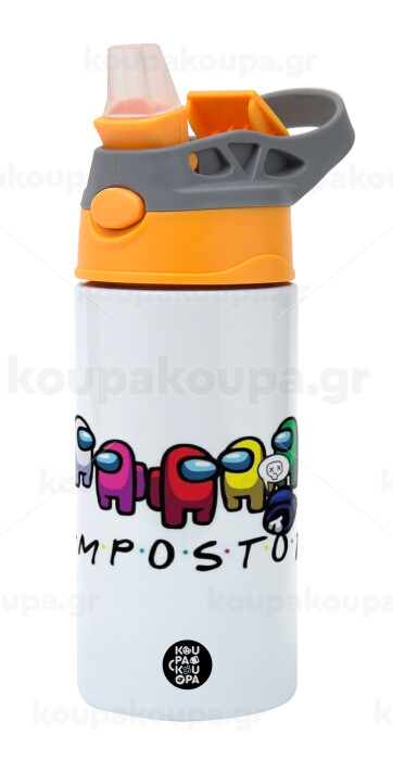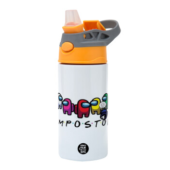 Among US impostor, Children's hot water bottle, stainless steel, with safety straw, Orange/Grey (360ml) BPA-FREE