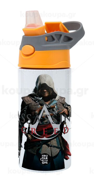 Assassin's Creed, Children's hot water bottle, stainless steel, with safety straw, Orange/Grey (360ml) BPA-FREE
