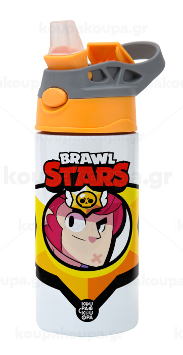 Brawl Stars Colt, Children's hot water bottle, stainless steel, with safety straw, Orange/Grey (360ml) BPA-FREE