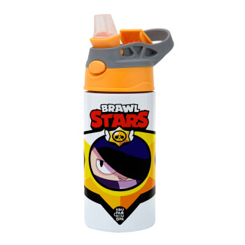 Brawl Stars Edgar, Children's hot water bottle, stainless steel, with safety straw, Orange/Grey (360ml) BPA-FREE
