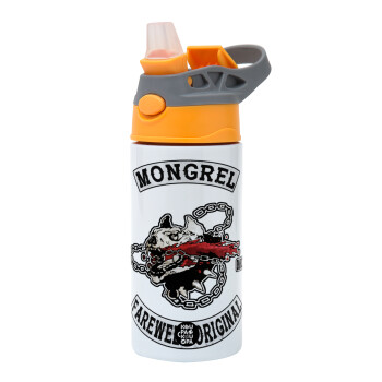 Day's Gone, mongrel farewell original, Children's hot water bottle, stainless steel, with safety straw, Orange/Grey (360ml) BPA-FREE