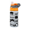 Eat Sleep Game Repeat, Children's hot water bottle, stainless steel, with safety straw, Orange/Grey (360ml) BPA-FREE