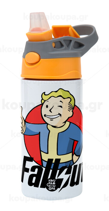 Fallout Vault Boy, Children's hot water bottle, stainless steel, with safety straw, Orange/Grey (360ml) BPA-FREE