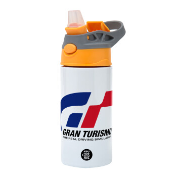 gran turismo, Children's hot water bottle, stainless steel, with safety straw, Orange/Grey (360ml) BPA-FREE