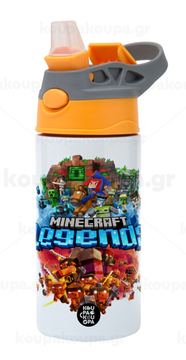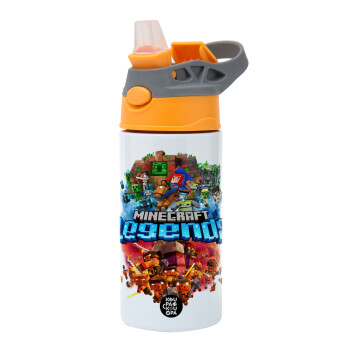Minecraft legends, Children's hot water bottle, stainless steel, with safety straw, Orange/Grey (360ml) BPA-FREE