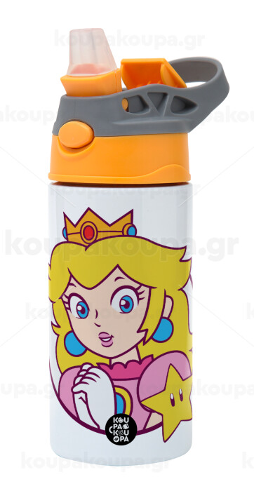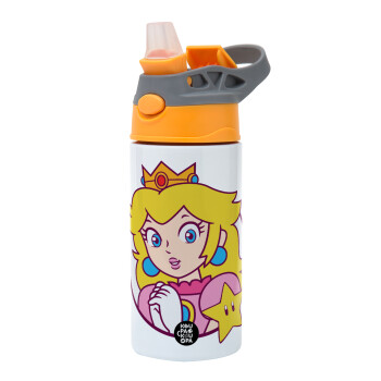 Princess Peach, Children's hot water bottle, stainless steel, with safety straw, Orange/Grey (360ml) BPA-FREE