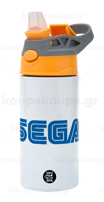 SEGA, Children's hot water bottle, stainless steel, with safety straw, Orange/Grey (360ml) BPA-FREE