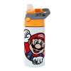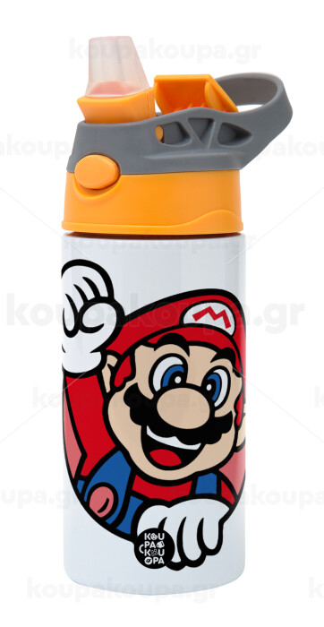 Super mario win, Children's hot water bottle, stainless steel, with safety straw, Orange/Grey (360ml) BPA-FREE