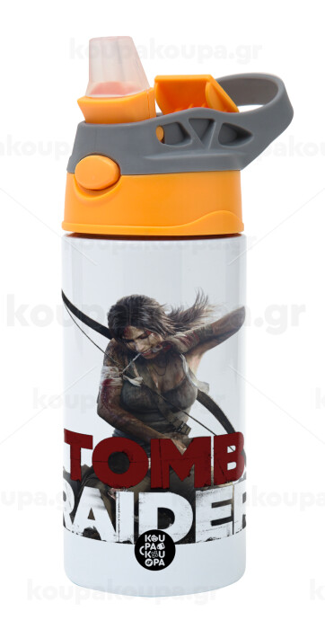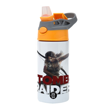 Tomb raider, Children's hot water bottle, stainless steel, with safety straw, Orange/Grey (360ml) BPA-FREE