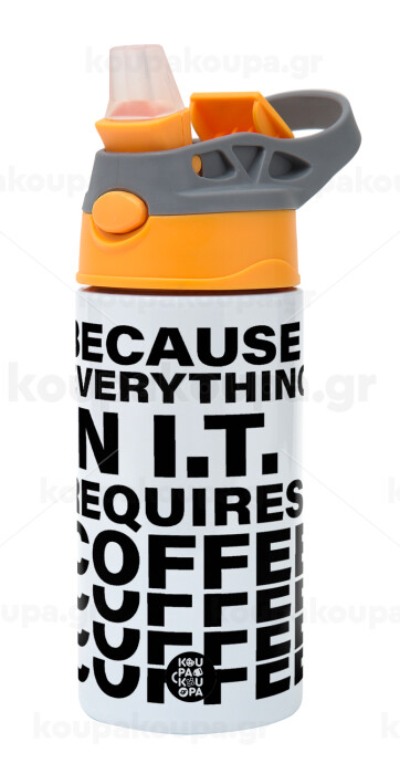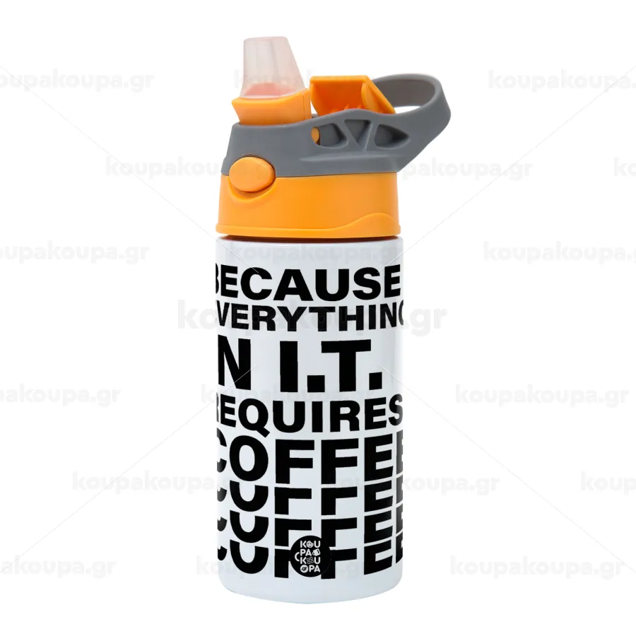 Because everything in I.T. requires coffee, Children's hot water bottle, stainless steel, with safety straw, Orange/Grey (360ml) BPA-FREE