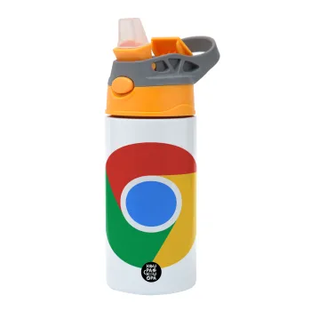 Chrome, Children's hot water bottle, stainless steel, with safety straw, Orange/Grey (360ml) BPA-FREE
