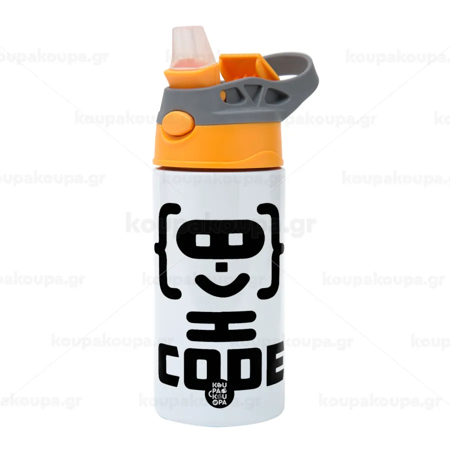 Code Heroes symbol, Children's hot water bottle, stainless steel, with safety straw, Orange/Grey (360ml) BPA-FREE