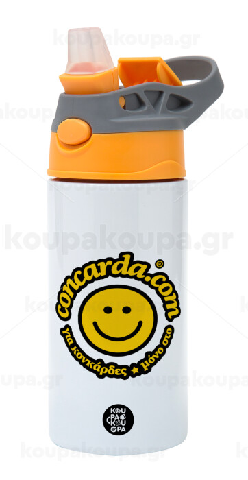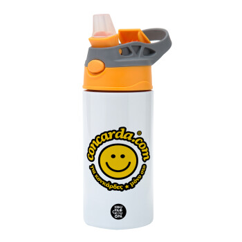 Concarda, Children's hot water bottle, stainless steel, with safety straw, Orange/Grey (360ml) BPA-FREE