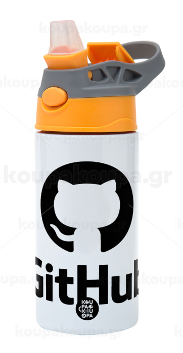 GitHub, Children's hot water bottle, stainless steel, with safety straw, Orange/Grey (360ml) BPA-FREE