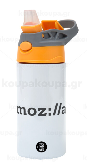 moz:lla, Children's hot water bottle, stainless steel, with safety straw, Orange/Grey (360ml) BPA-FREE