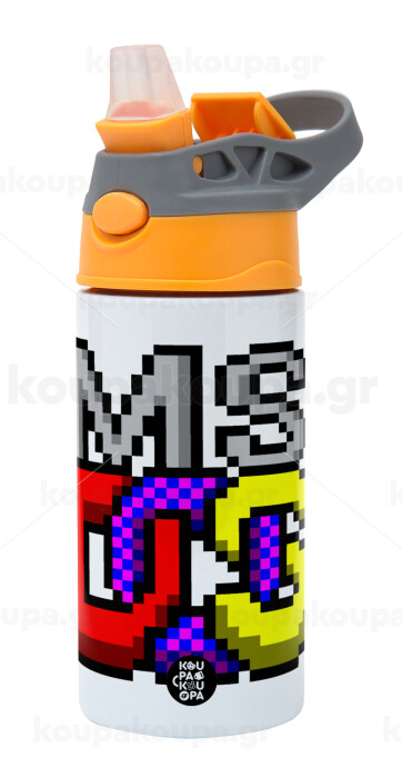 MsDos, Children's hot water bottle, stainless steel, with safety straw, Orange/Grey (360ml) BPA-FREE