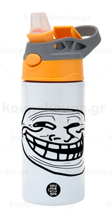 Troll face, Children's hot water bottle, stainless steel, with safety straw, Orange/Grey (360ml) BPA-FREE