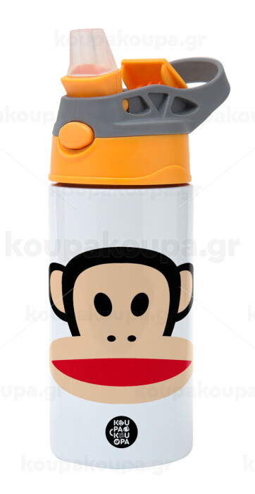 Monkey, Children's hot water bottle, stainless steel, with safety straw, Orange/Grey (360ml) BPA-FREE
