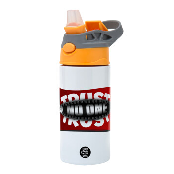 Trust no one... (zipper), Children's hot water bottle, stainless steel, with safety straw, Orange/Grey (360ml) BPA-FREE