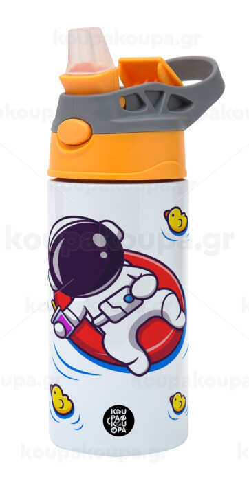 Μικρός αστροναύτης θάλασσα, Children's hot water bottle, stainless steel, with safety straw, Orange/Grey (360ml) BPA-FREE