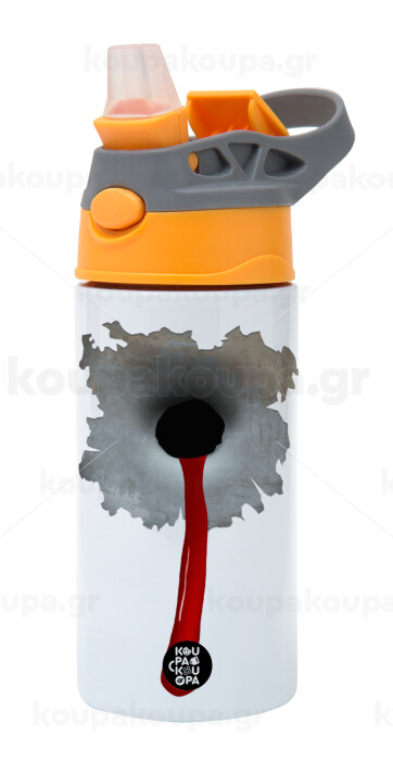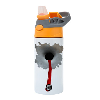 Bullet holes, Children's hot water bottle, stainless steel, with safety straw, Orange/Grey (360ml) BPA-FREE