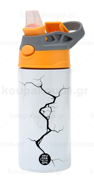 Cracked, Children's hot water bottle, stainless steel, with safety straw, Orange/Grey (360ml) BPA-FREE