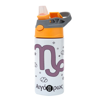 Ζώδια Αιγόκερως, Children's hot water bottle, stainless steel, with safety straw, Orange/Grey (360ml) BPA-FREE