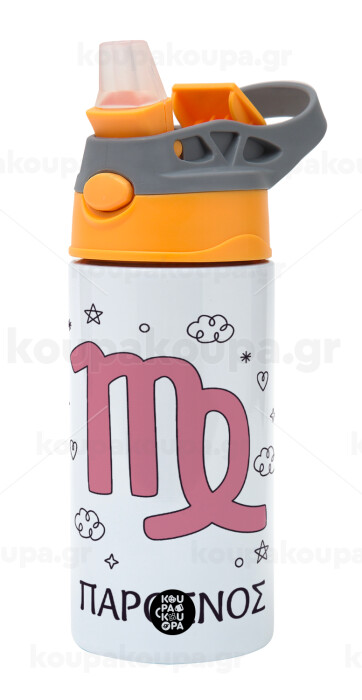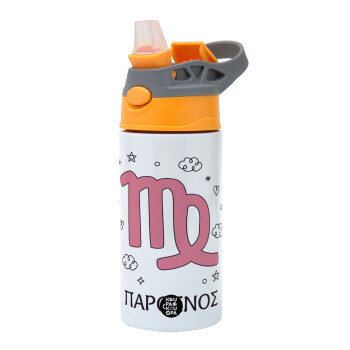 Ζώδια Παρθένος, Children's hot water bottle, stainless steel, with safety straw, Orange/Grey (360ml) BPA-FREE