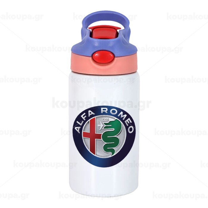 Alfa Romeo, Children's hot water bottle, stainless steel, with safety straw, pink/purple (350ml)