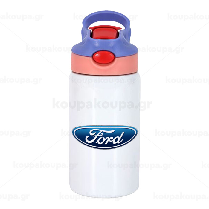 Ford, Children's hot water bottle, stainless steel, with safety straw, pink/purple (350ml)
