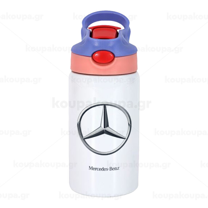 mercedes, Children's hot water bottle, stainless steel, with safety straw, pink/purple (350ml)