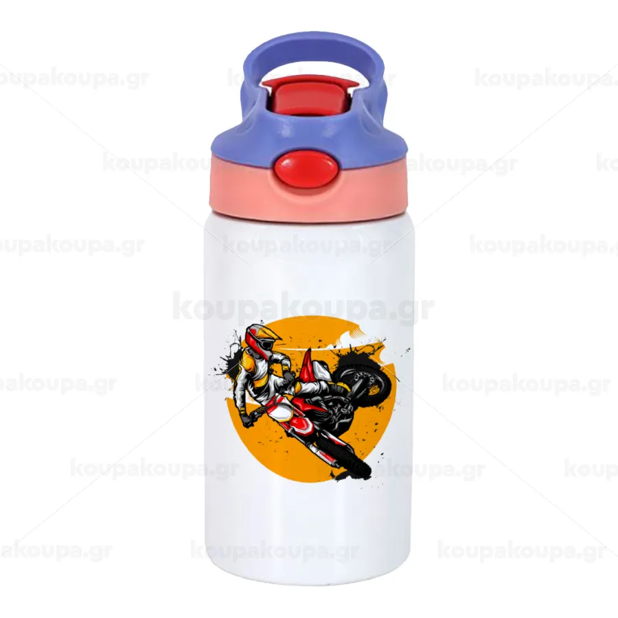 Motocross, Children's hot water bottle, stainless steel, with safety straw, pink/purple (350ml)
