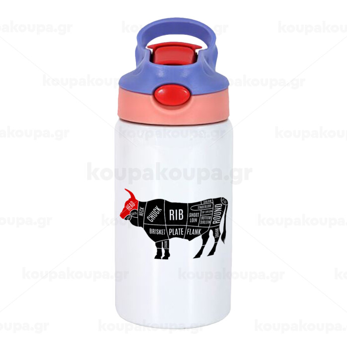 Diagrams for butcher shop, Children's hot water bottle, stainless steel, with safety straw, pink/purple (350ml)