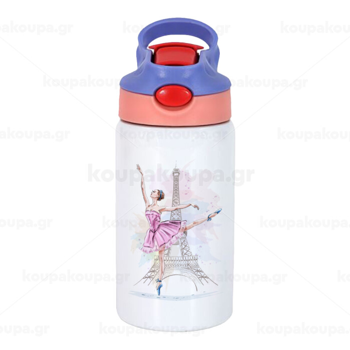 Ballerina in Paris, Children's hot water bottle, stainless steel, with safety straw, pink/purple (350ml)