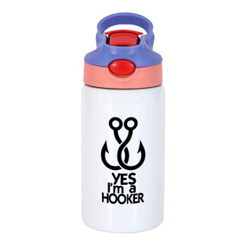 Yes i am Hooker, Children's hot water bottle, stainless steel, with safety straw, pink/purple (350ml)